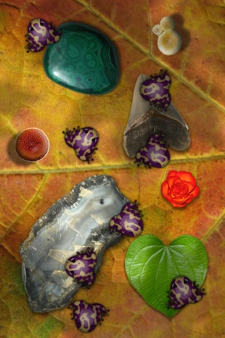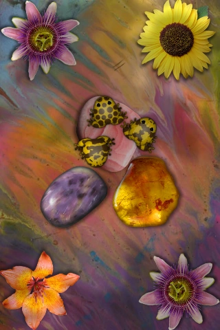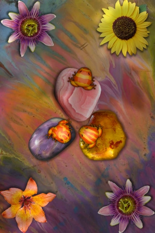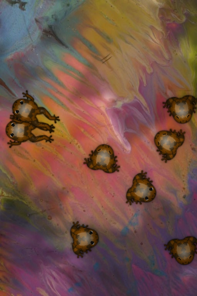 The patterns on these frogs look like clouds in the sky. |