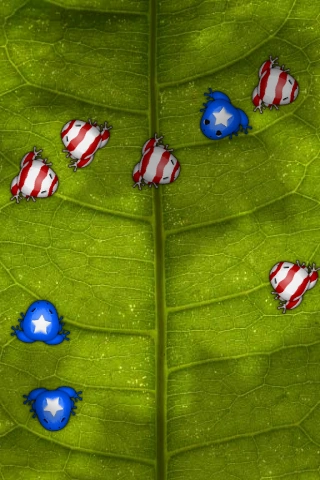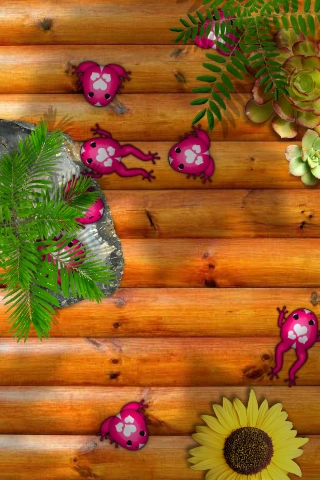 The frogs' patterns are the same as a ladybug's. |